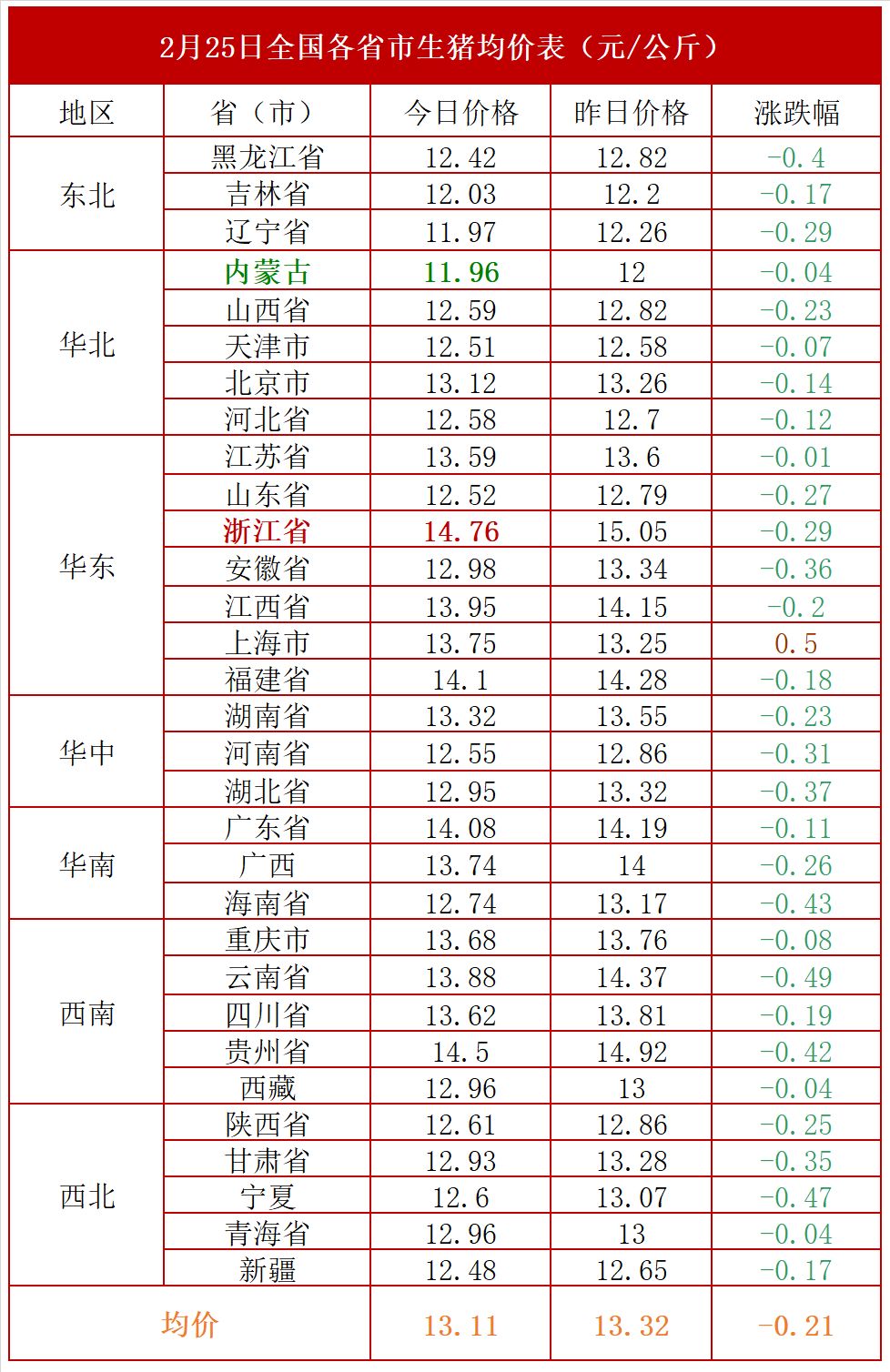 而据中央人民广播电台《中国乡村之声》2月24日报道:生猪市场最近两天再次出现了大幅度下跌,全国瘦肉型猪的出栏均价已经下跌至13元左右一公斤,这一价格已经距离成本线非常接近,这一点可以从最近这两天的猪料比价、猪粮比价中看出。