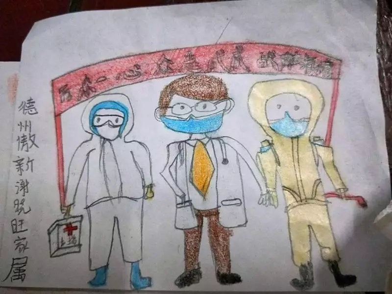 战疫不是一个人或一个群体的事情,每个人都是战士。在谢晓旺老师的指导下,吴乐乐小朋友用画笔记录下了此刻心中的感受,这是以往工作繁忙时难得的亲子时光。万众一心,战疫必胜!乐乐的温暖,前线的“英雄们”一定能够感受到。