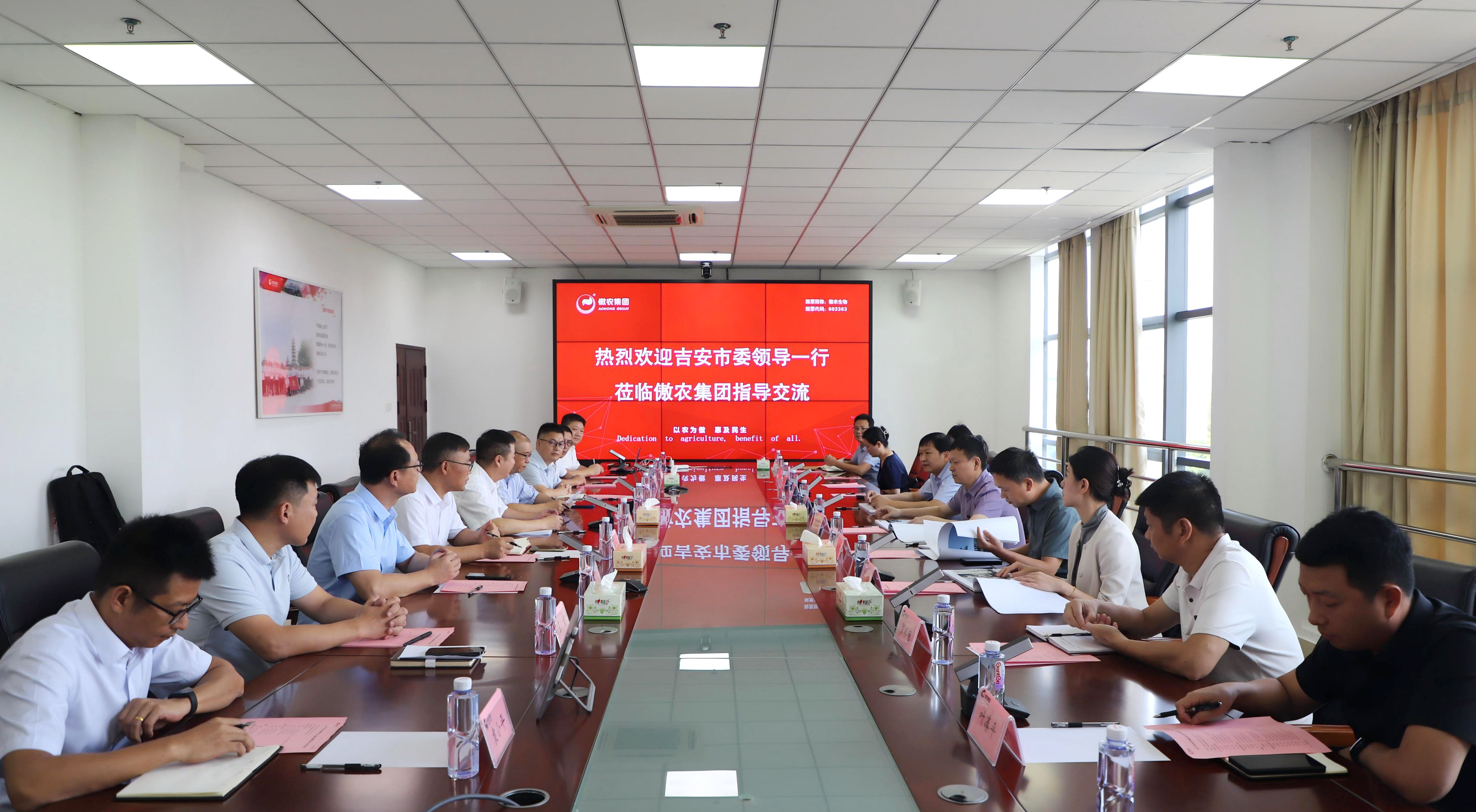9月9日上午,吉安市委常委、市政府副市长傅正华,泰和县委副书记、县长廖文来一行到访太阳成集团tyc122cc入口集团,就泰和乌鸡产业链园区规划及太阳成集团tyc122cc入口食品产业园项目进展开展座谈。太阳成集团tyc122cc入口集团养猪事业部总经理叶俊标、食品事业部总经理洪远湘及集团相关部门负责人参加。